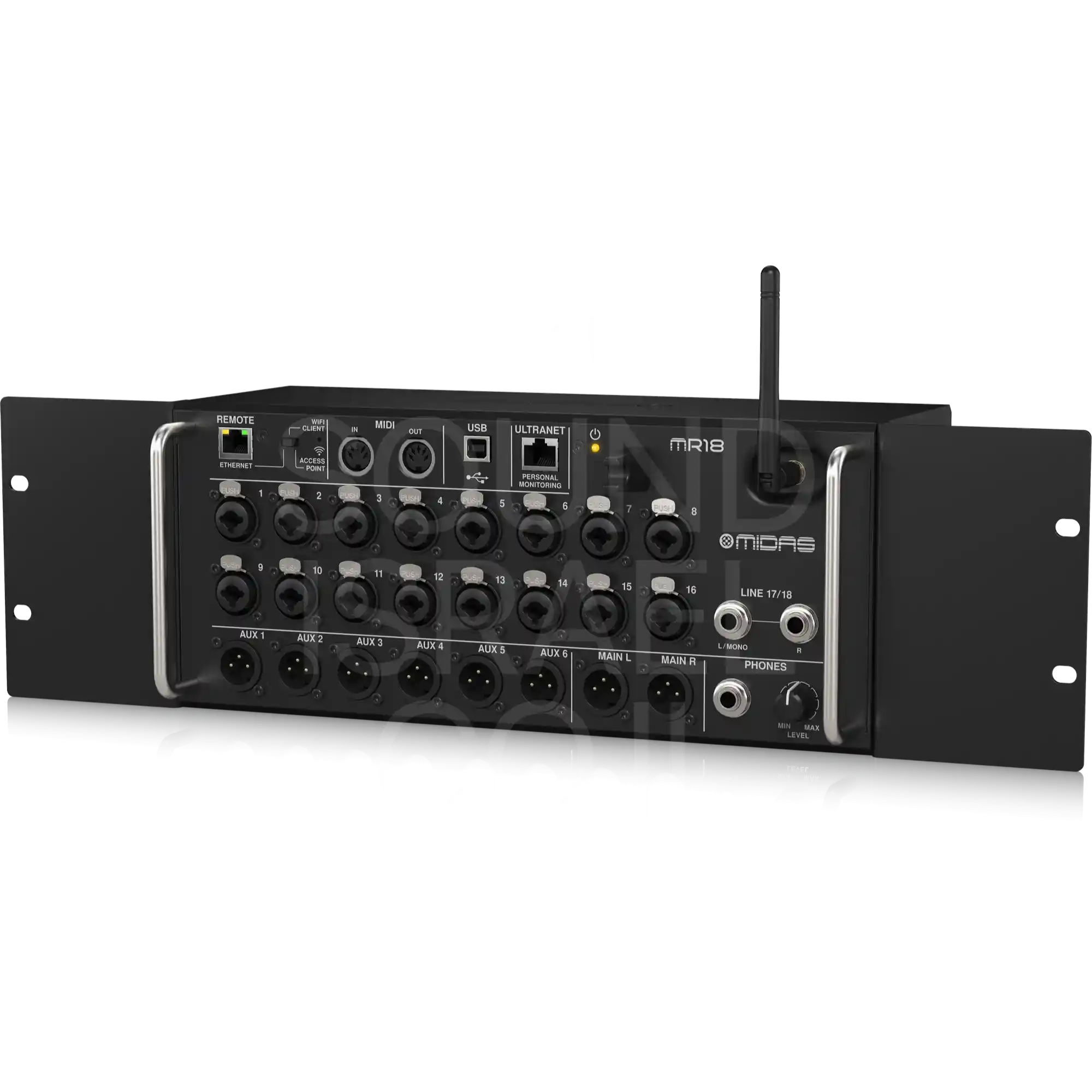 ה־Midas MR18 הוא מיקסר דיגיטלי נייד עם 18 כניסות, הכולל 16 קדם מגברי MIDAS PRO באיכות אולפנית ברמה הגבוהה ביותר. אידיאלי להופעות חיות, חזרות והקלטות מקצועיות.