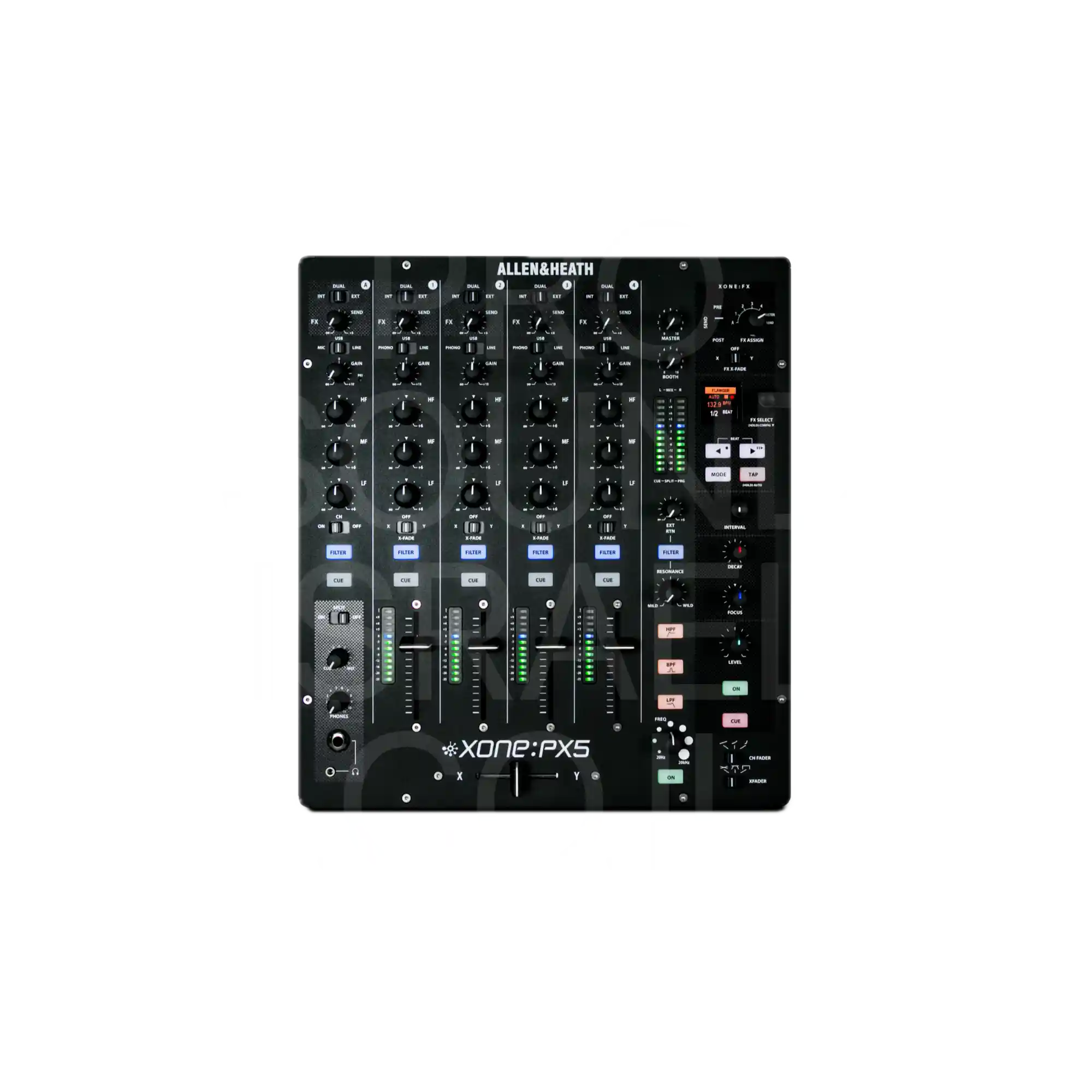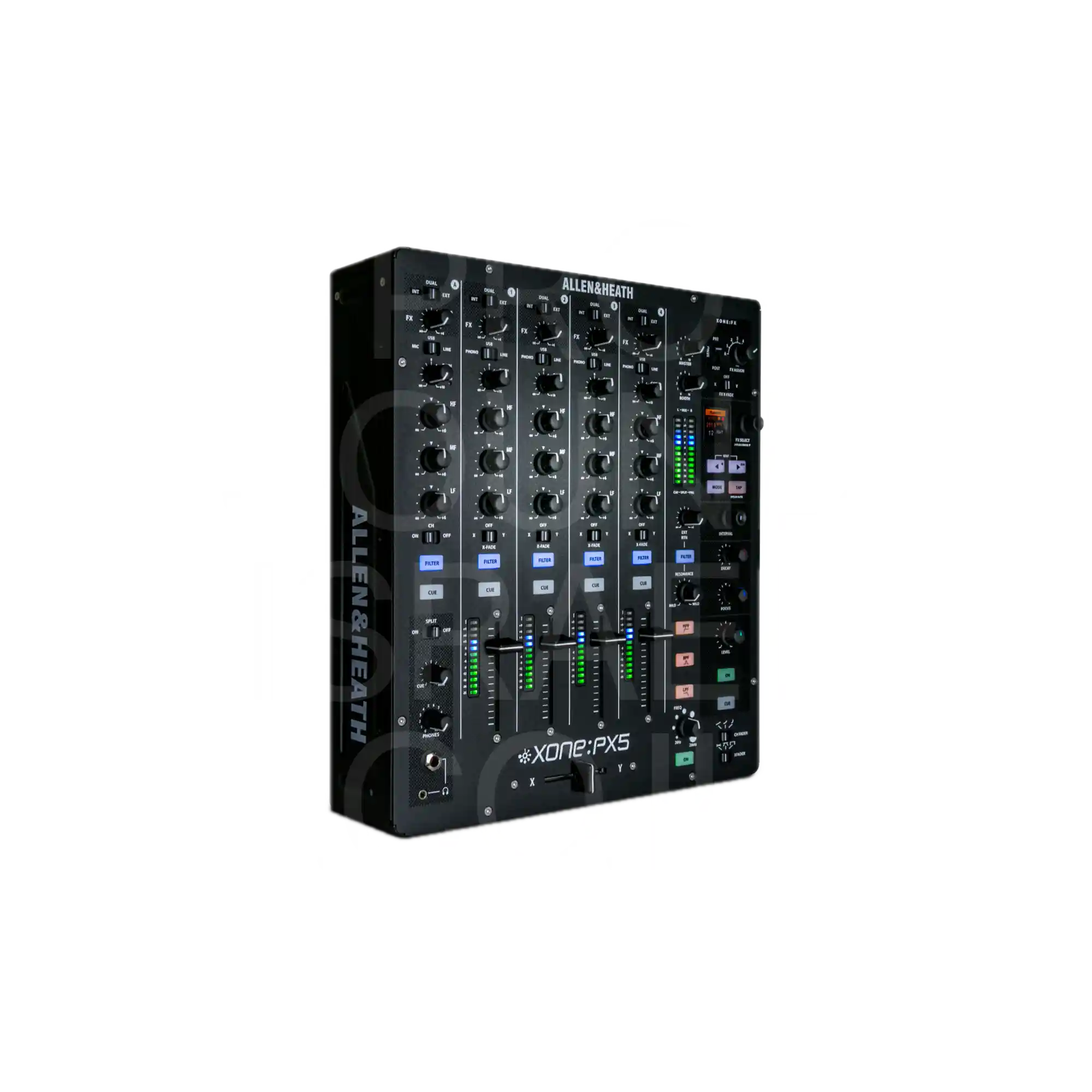 ה-Xone:PX5 משלב מנוע סאונד אנלוגי איכותי עם יחידת FX דיגיטלית מובנית (Xone:Xcite FX), המציעה מגוון אפקטים מקצועיים כגון Delay, Reverb, Modulation ו-Distortion. כל ערוץ כולל EQ אנלוגי 3-פסים ופילטר Xone קלאסי (HPF / LPF) עם שליטה רזוננסית מדויקת.